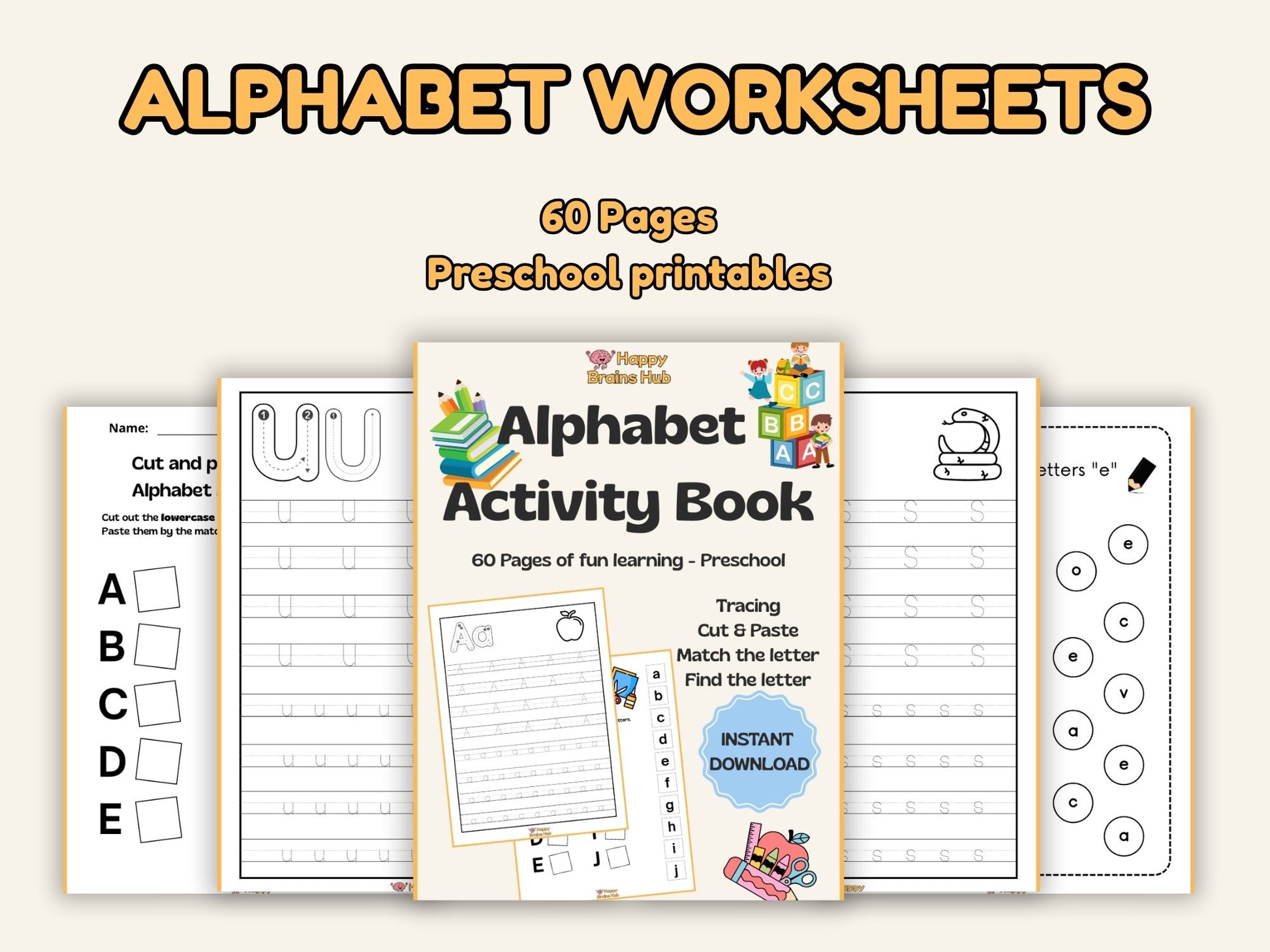 This bundle includes 60 printable alphabet worksheets, featuring: