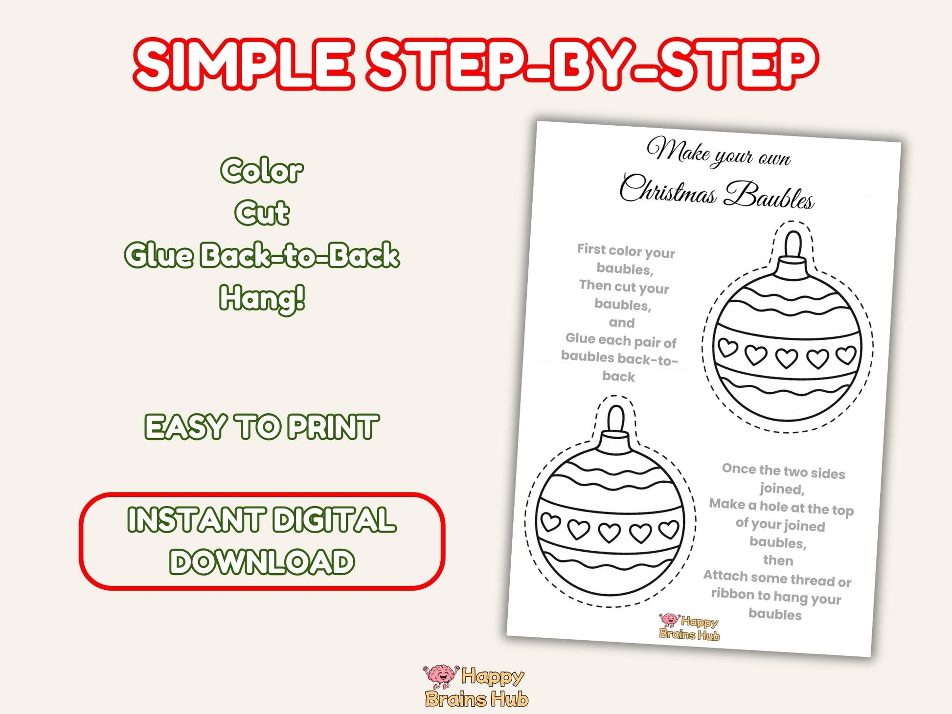 🎄 Christmas Ornament Coloring Craft Kit – 30 Printable Baubles (Kids Activity, DIY Decorations)