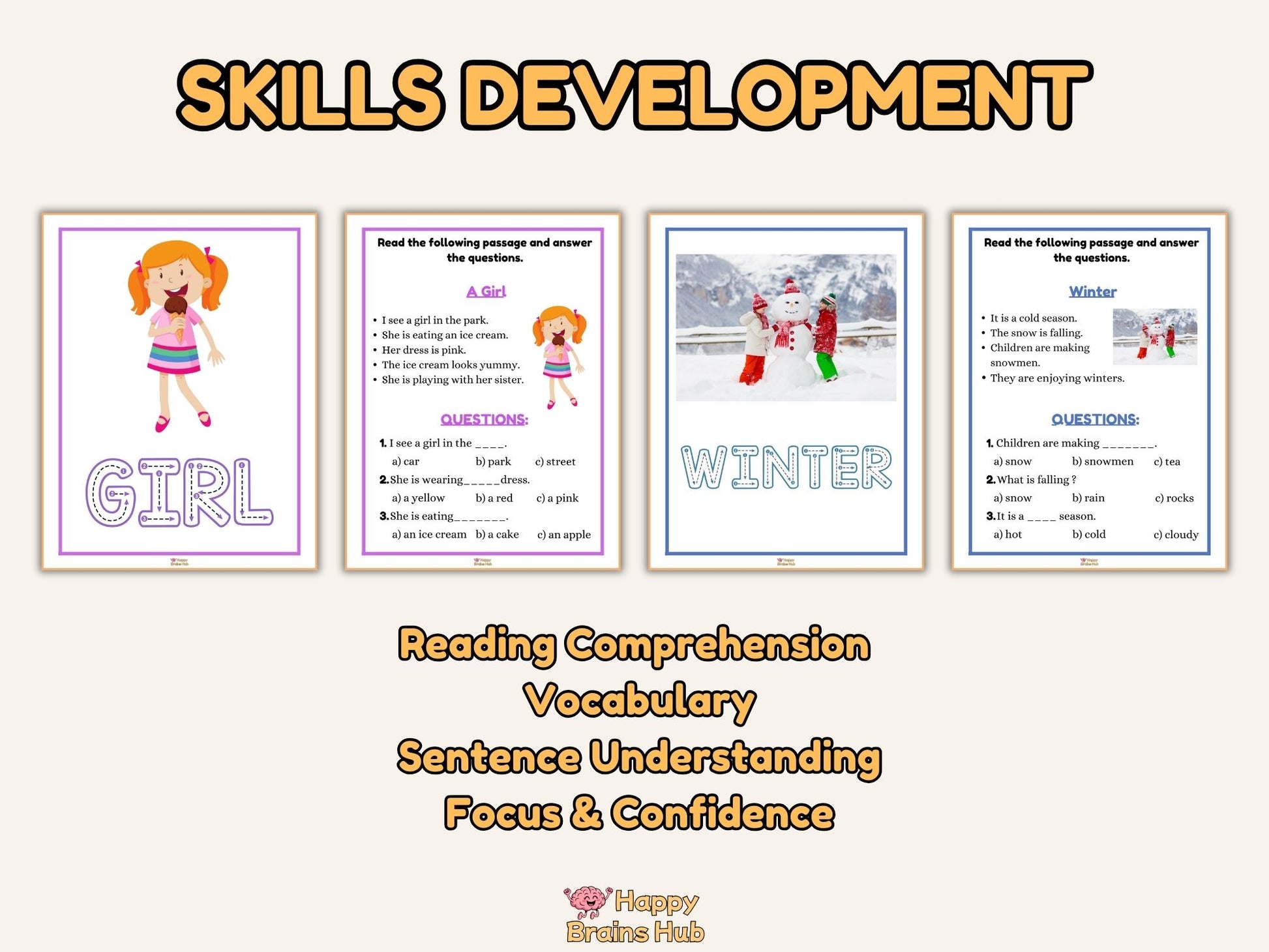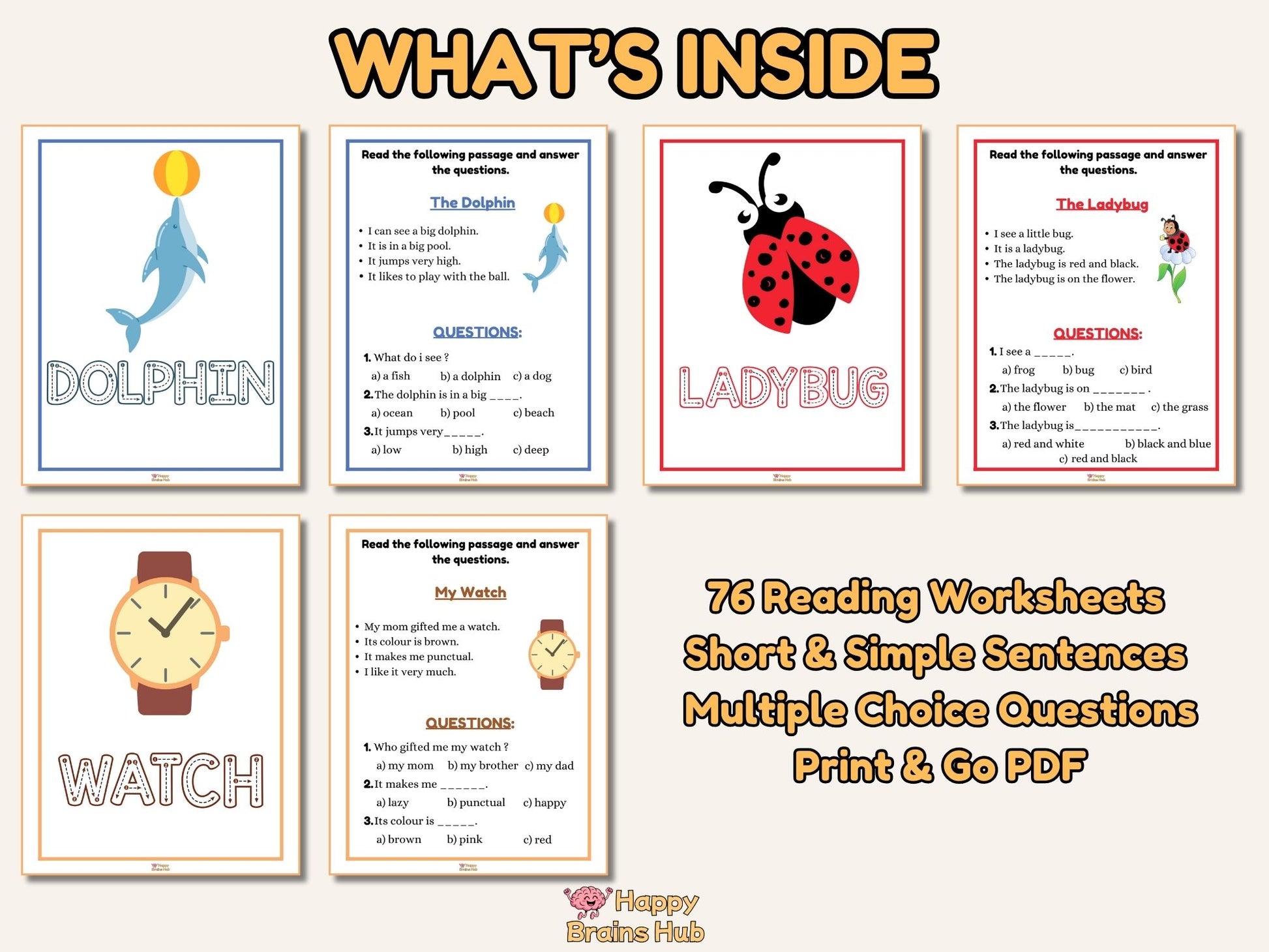 Perfect for kindergarten and early 1st grade, these worksheets use short, simple sentences, adorable illustrations, and multiple-choice questions to make comprehension easy and enjoyable.